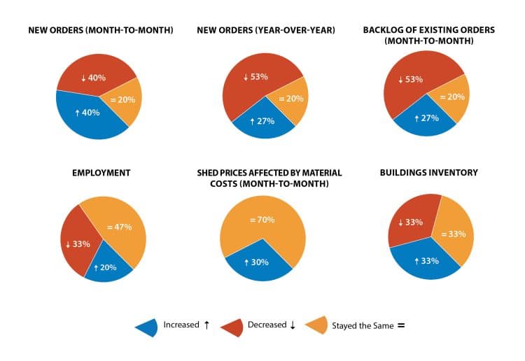 In the latest survey of shed businesses, more companies experienced an increase in new orders compared to the previous month. This is a positive indicator as the selling season begins to wind down in some regions of the country.