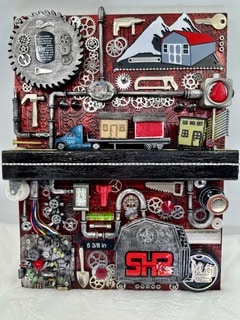 As I cleaned out barns, I found tiny treasures—trinkets, jewelry chains, watches, and ornaments. I couldn’t throw them away, so I saved them. Around that time, Pinterest inspired me with artists making art from found objects. So, Richard and I built a blue-and-white art studio shed in our backyard. It took two years to finish in between his busy shed work, but it was a labor of love. In 2017, Art By TinaJewel was born.