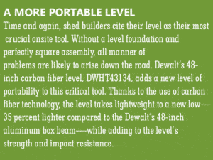 Of course, there’s another aspect to portability that shed builders have to address. Mangano points to transportation delivery equipment as the crucial tool for improving a shed builder’s overall product portability.